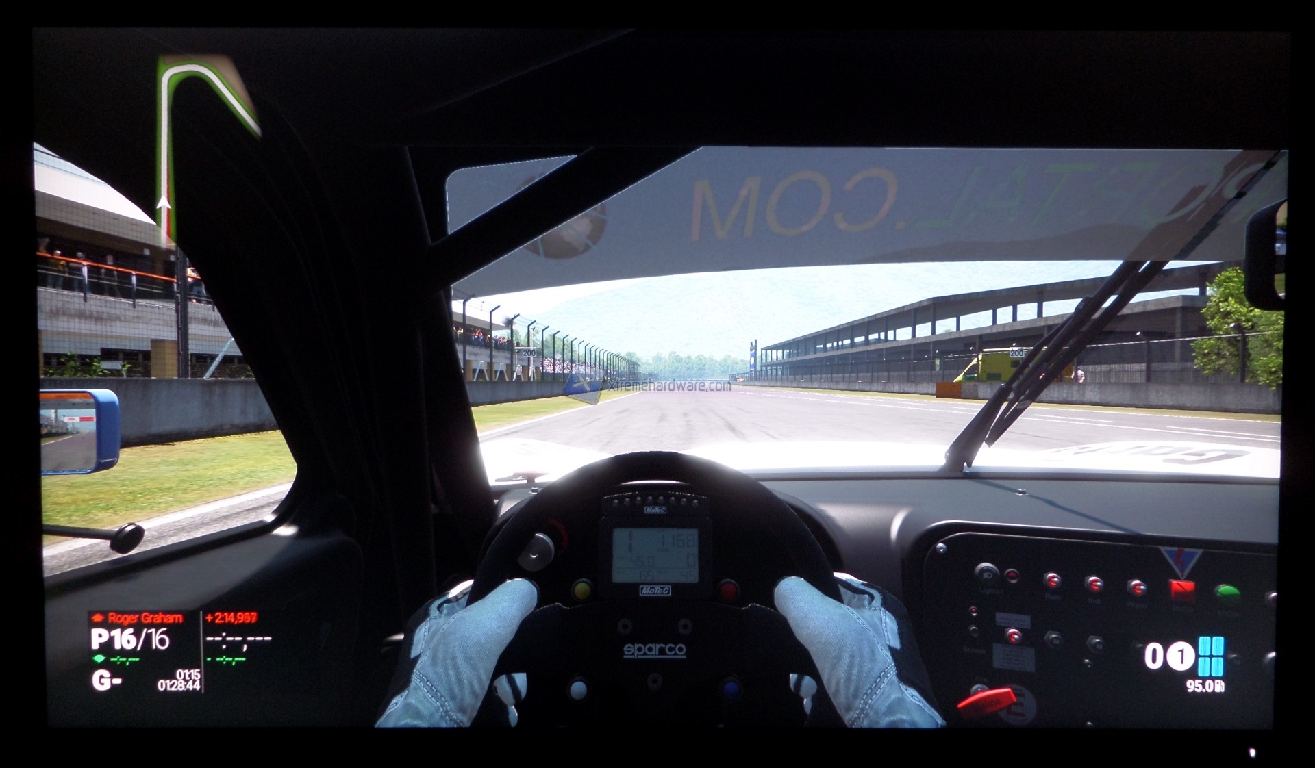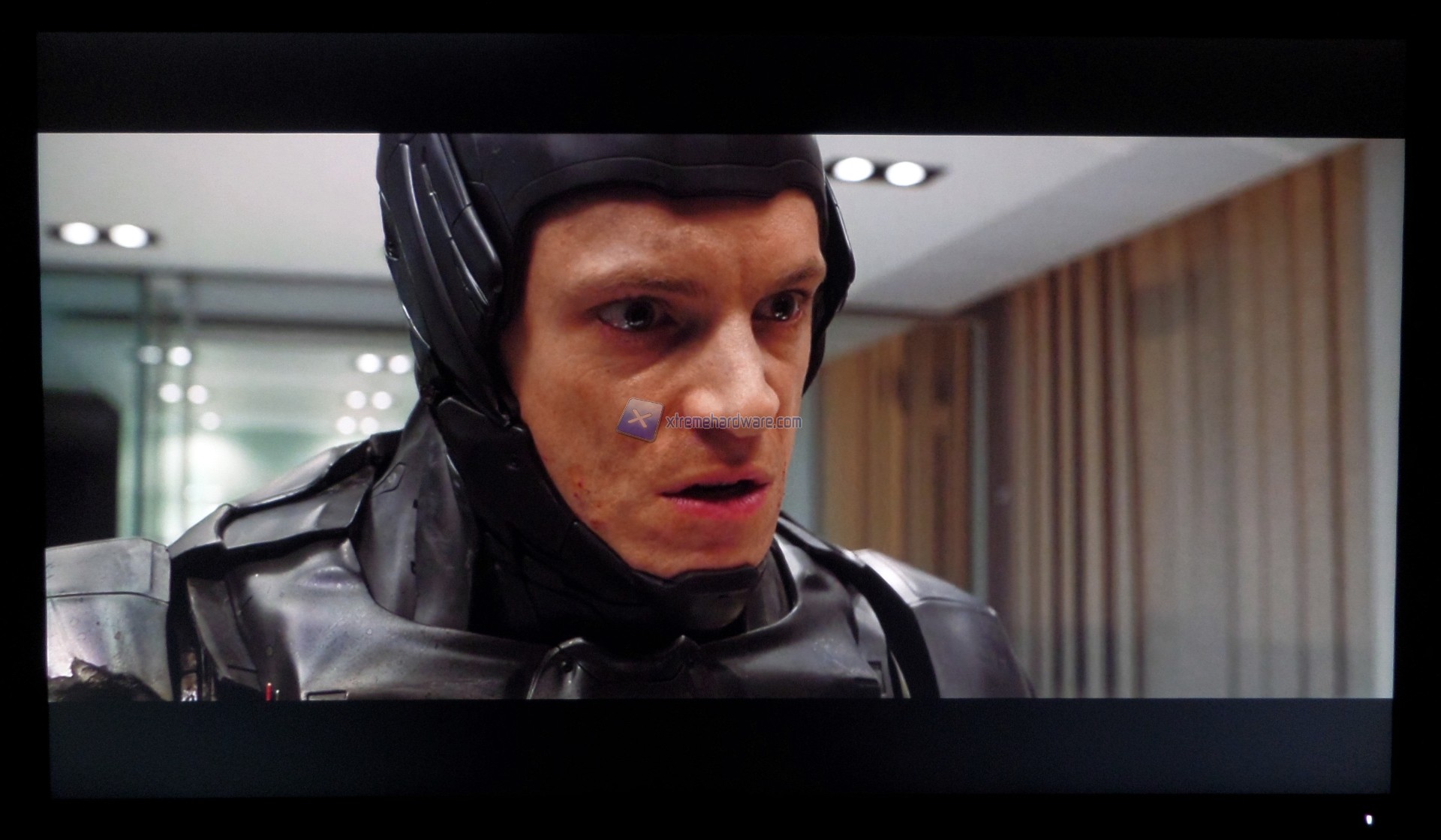 Come già mostrato nel capitolo precedente, l’uniformità del nostro esemplare non è risultata affatto buona e qui, grazie a qualche immagine, ne mostriamo l’entità in altri ambiti. Durante la visione dei film, a causa della presenza delle bande nere per il diverso aspect ratio, il risultato non è positivo e capita, a seconda della scena riprodotta, di venire distratti dai fasci luminosi. In game, guardando la foto catturata all’interno dell’abitacolo dell’auto da corsa, non sarà difficile notare ancora gli stessi fasci e soprattutto nell’angolo in alto a sinistra; quello opposto è in parte peggiorato per via degli effetti della luminosità nello stesso game.